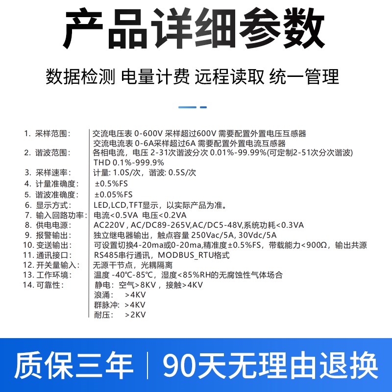 您的位置:他他商城  >   >  田一多功能三相电力仪表数显监测单相电压电流rs485通讯谐波电表