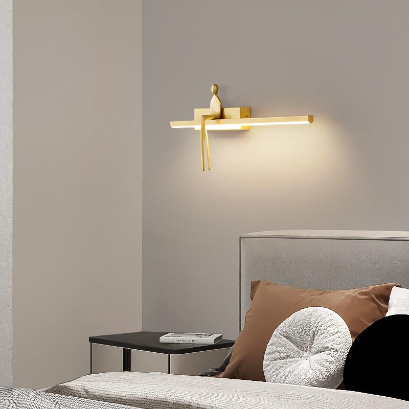 北欧轻奢全铜卧室床头长条壁灯意式极简高级感客厅设计师简约墙灯 - 酷安晓然的小店