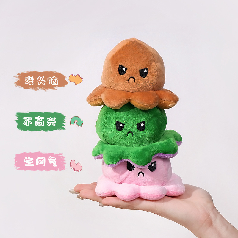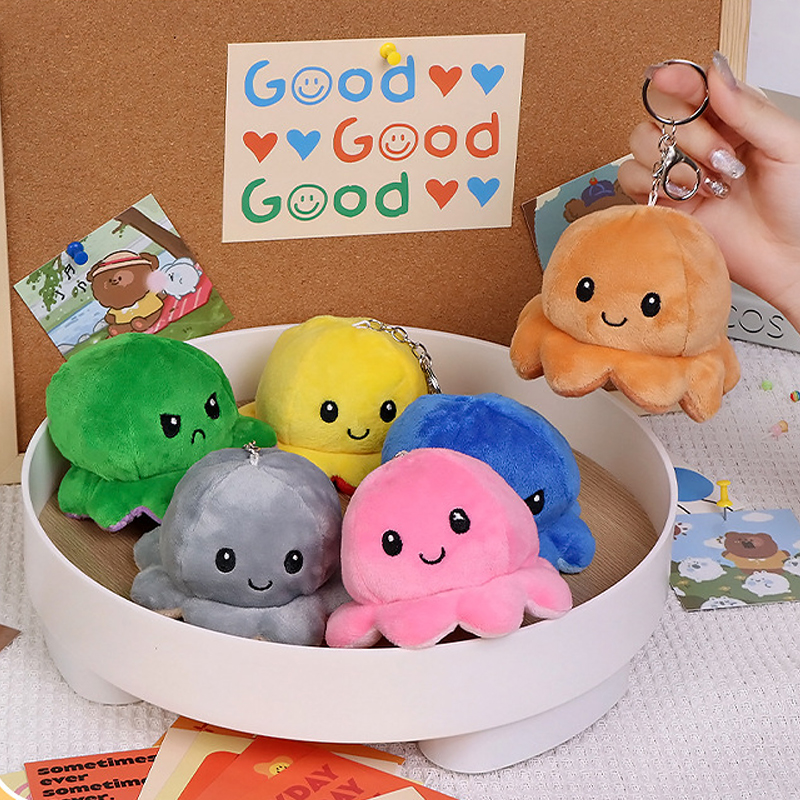 翻脸小章鱼挂件个性毛绒公仔钥匙扣书包小挂件可爱变脸玩偶双面 - 柒月家居 发现美好生活