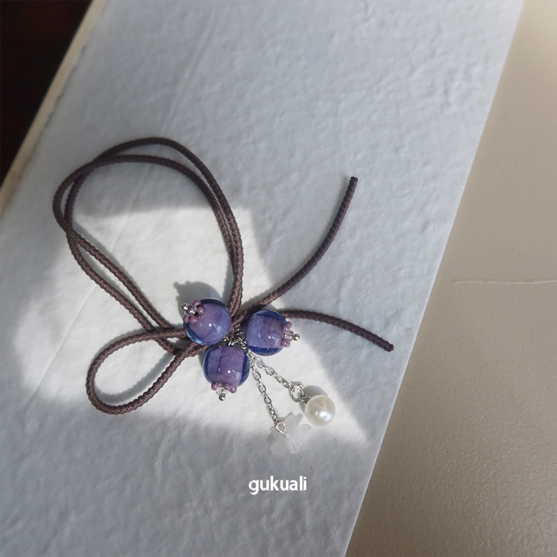 GUKUALI新款发圈紫水晶高弹力橡皮筋发绳珍珠发饰头绳女扎头发夏 - GUKUA LI 小姐设计品牌