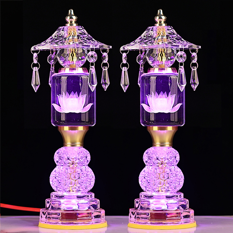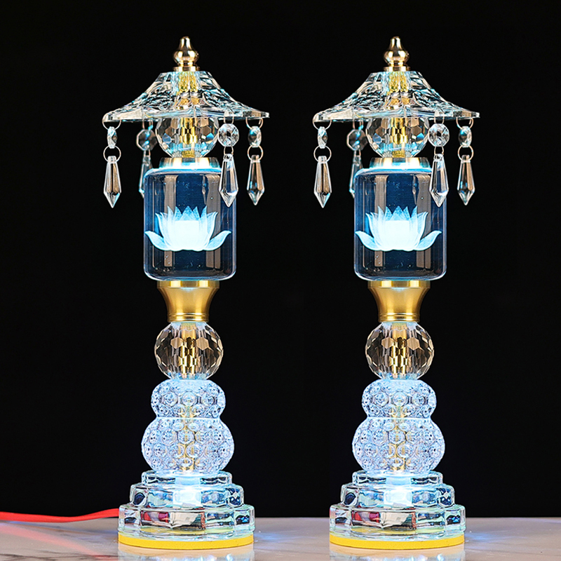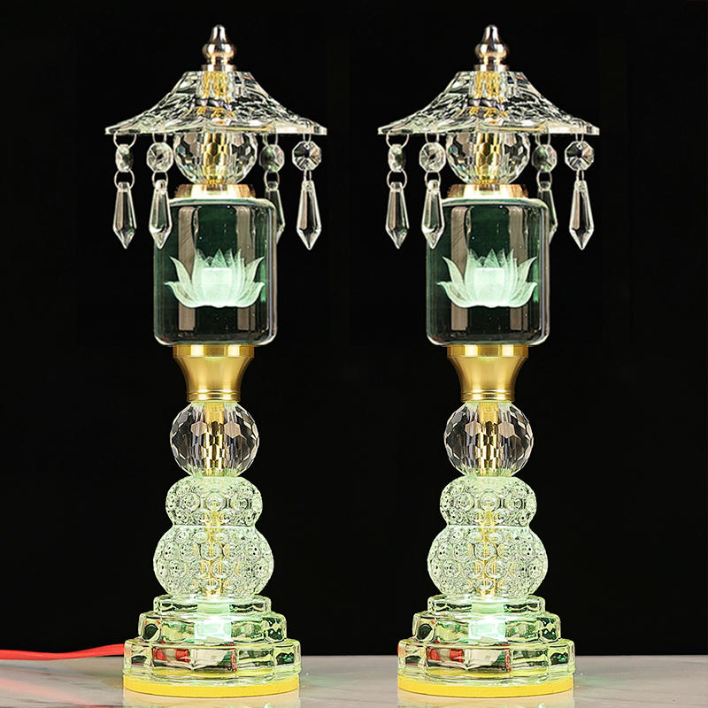 led玻璃水晶莲花佛供灯七彩佛灯家用佛堂照明灯观音菩萨插电新款