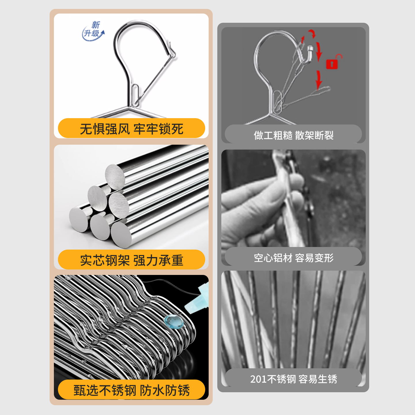 304不锈钢防风衣架家用挂衣晾衣服撑子高楼自动卡扣防吹走衣架子 - 友纳义乌专卖店