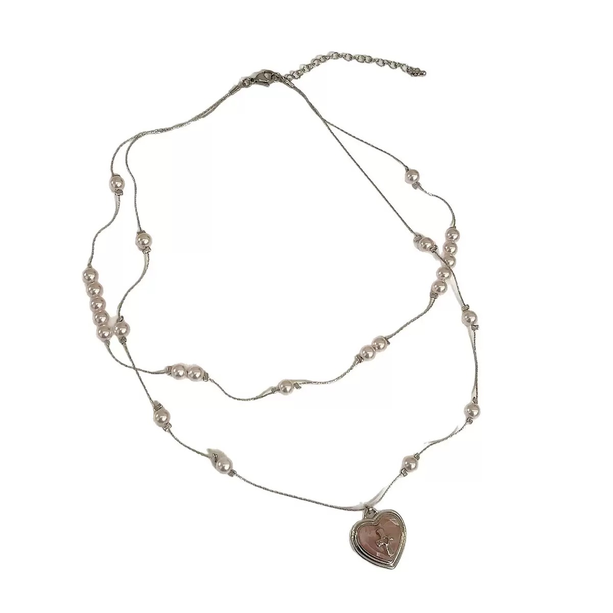 甜美粉色少女风珍珠爱心叠戴项链女小众轻奢高级设计感锁骨链配饰 - 川野集饰品