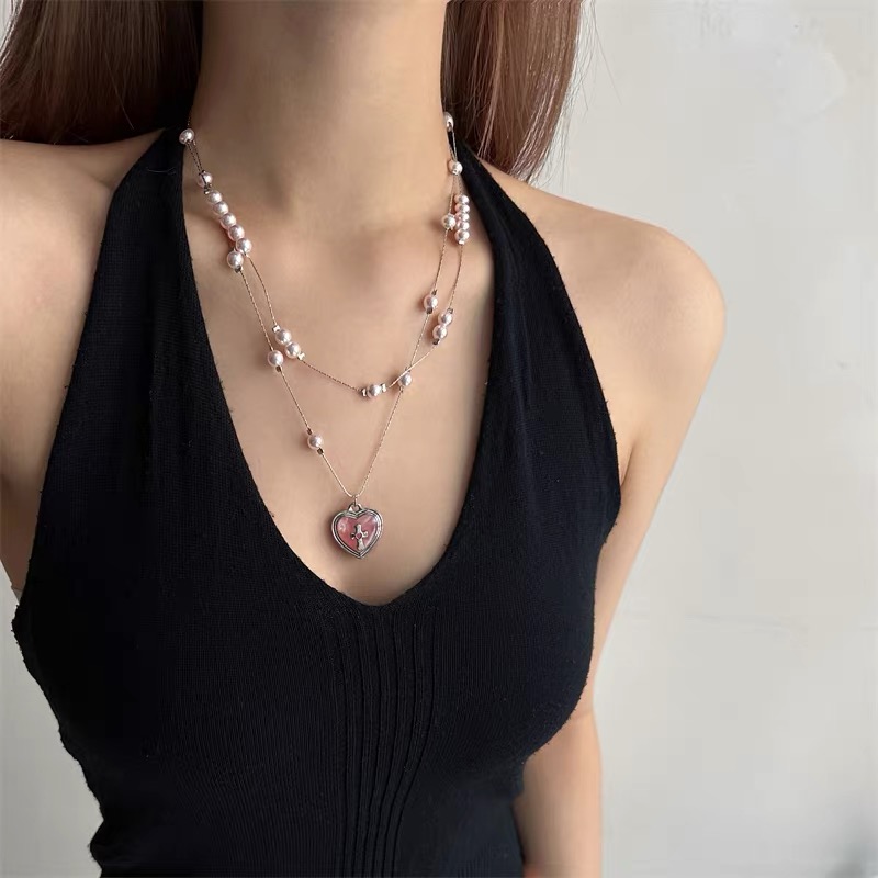 您的位置:他他商城  >   >  甜美粉色少女风珍珠爱心叠戴项链女小众轻奢高级设计感锁骨链配饰