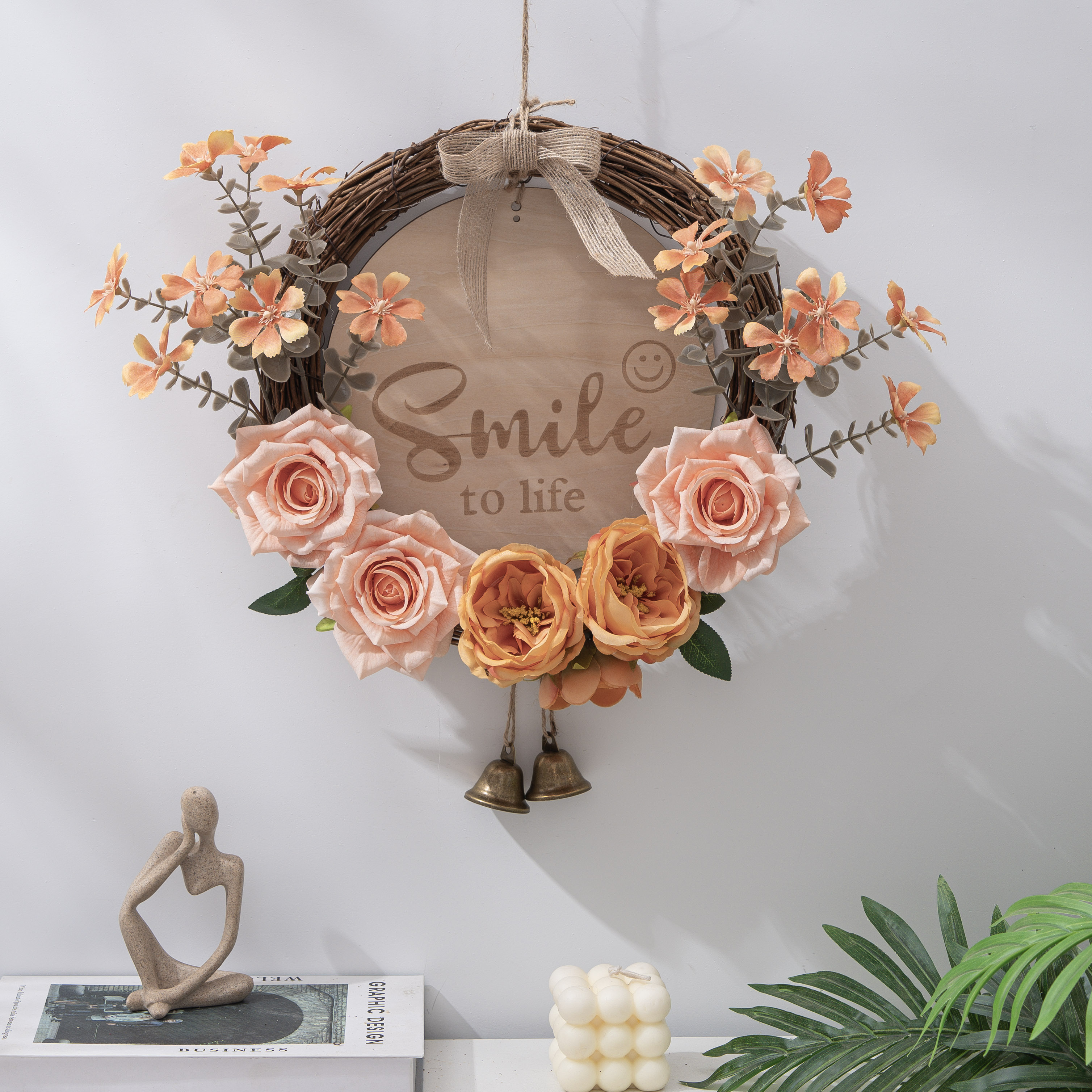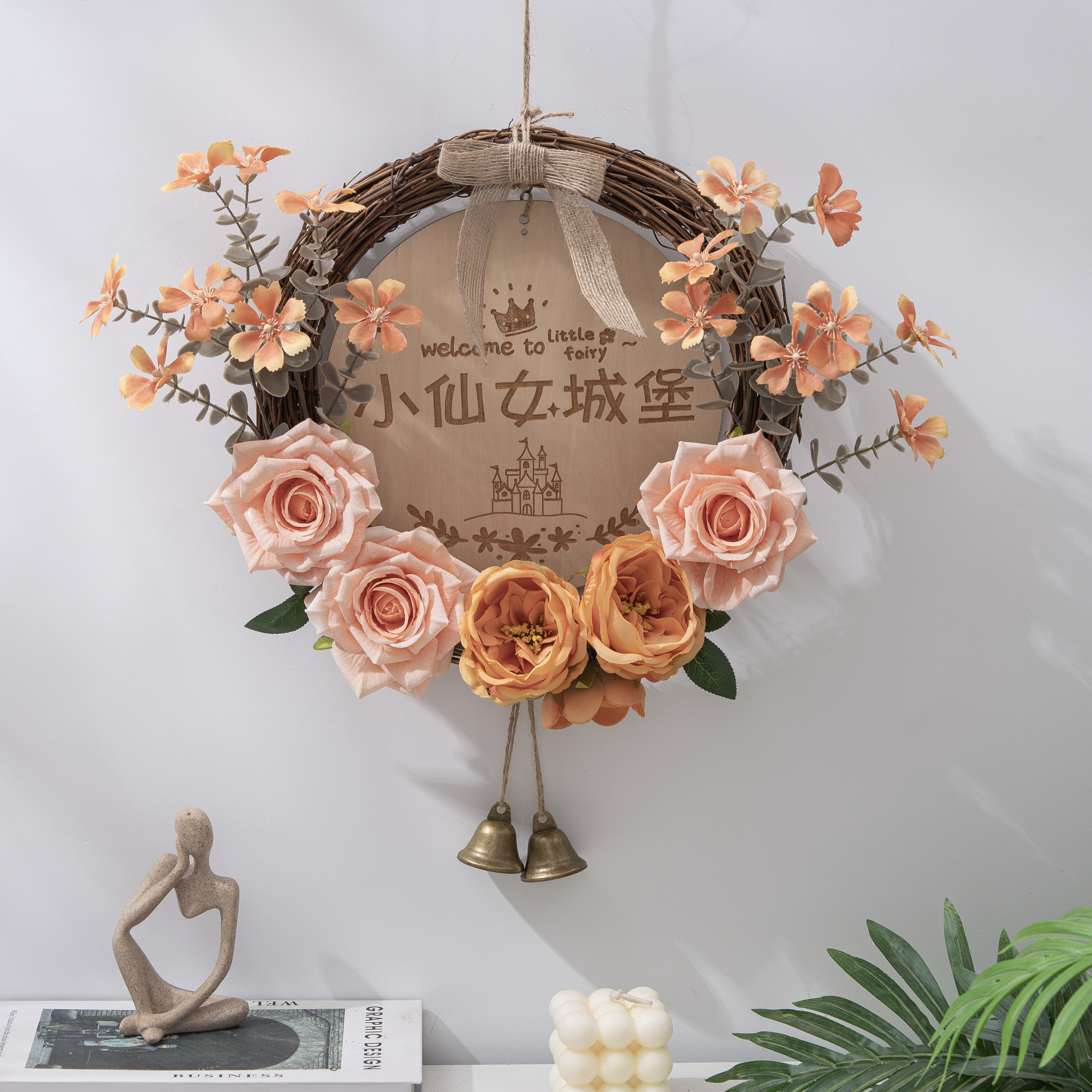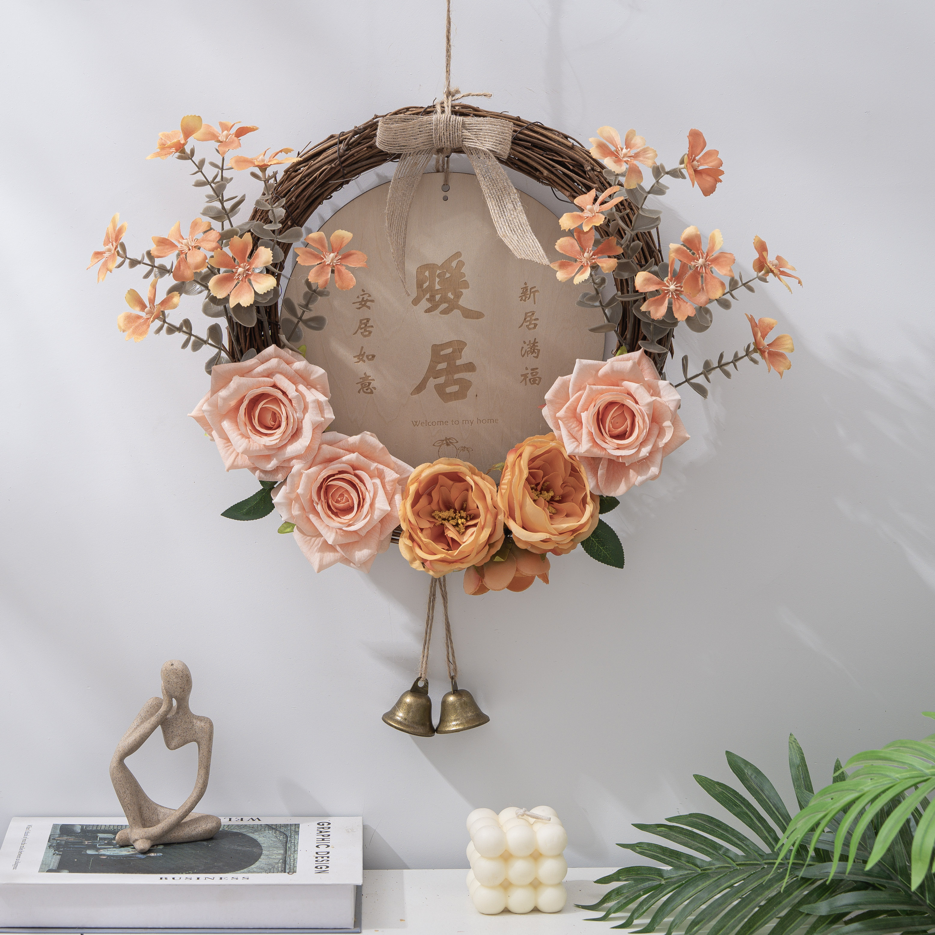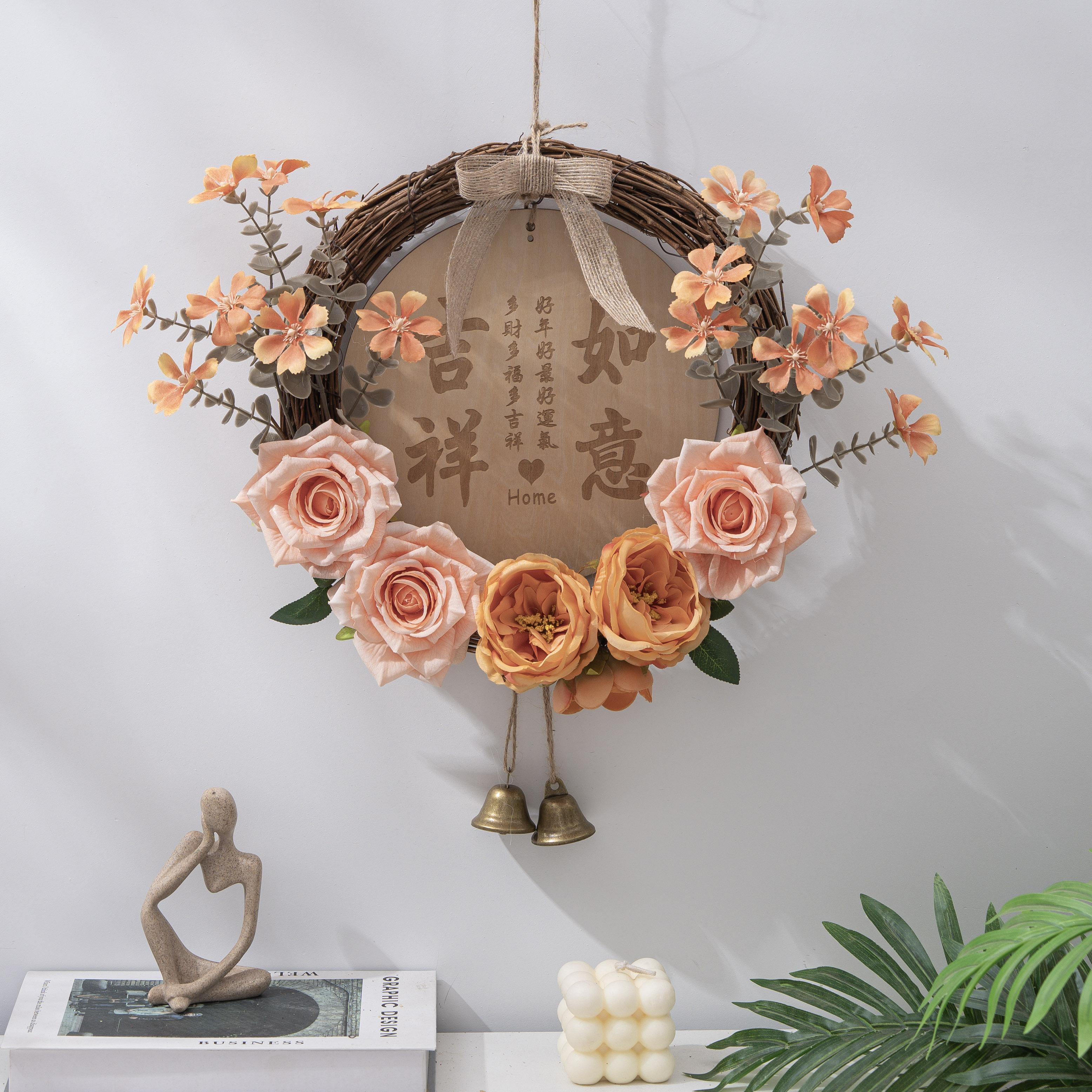 创意仿真花挂饰客厅入户门上花环挂件店铺墙上遮丑装饰卧室门挂饰 - 饰语家居