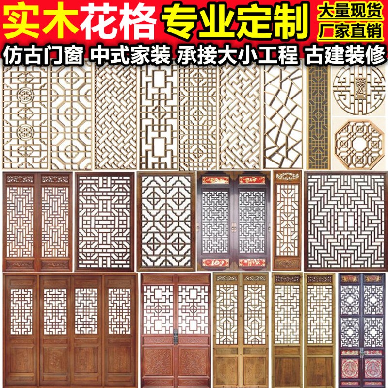 东阳木雕仿古门窗实木花格玄关隔断中式风格装修背景墙吊顶木格栅 - 飞扬工厂直销