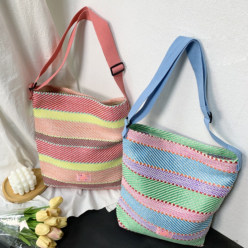 您的位置:他他商城  >   >  原创设计渡假编织帆布包女2025新款大容量通勤斜挎包单肩手提袋夏