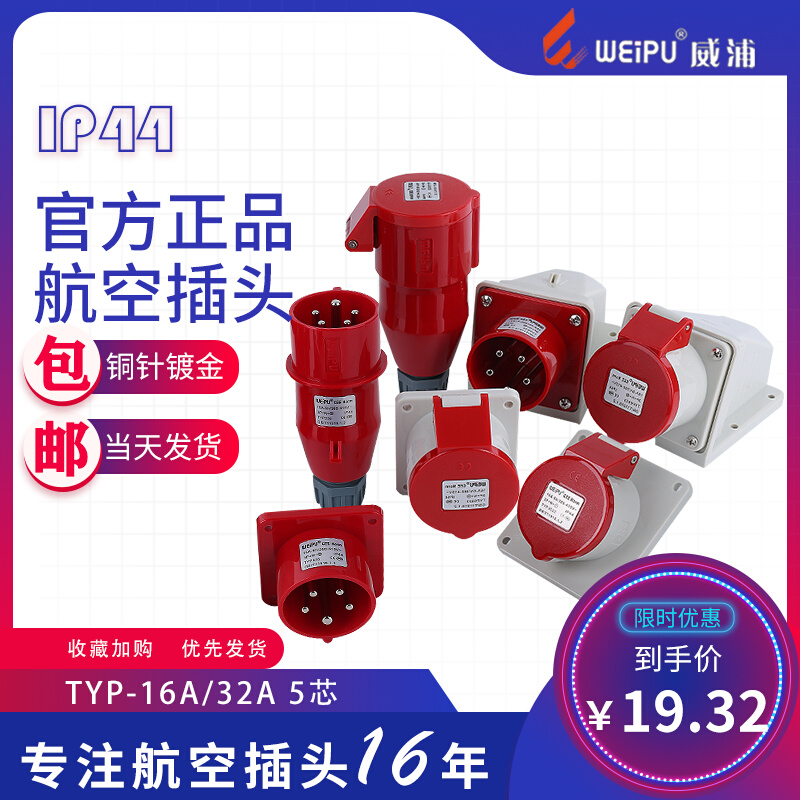WEIPU威浦TYP285 235航空6623工业5823插头16A32A5芯5623明装6823 - 夏梅化果商城