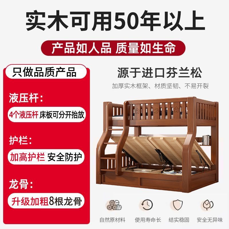 全实木高箱上下床双层床两层高低床子母床上下铺木床小户型儿童床
