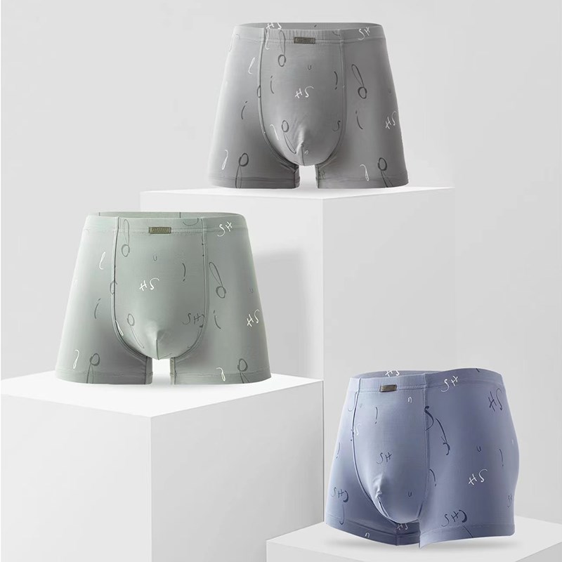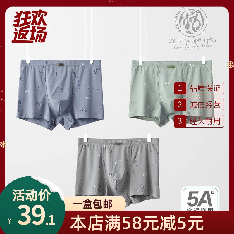 一盒2条 普利诗内裤男士中腰莫尔代棉青年简约平角抗菌短裤33390 - 齐安狂欢店