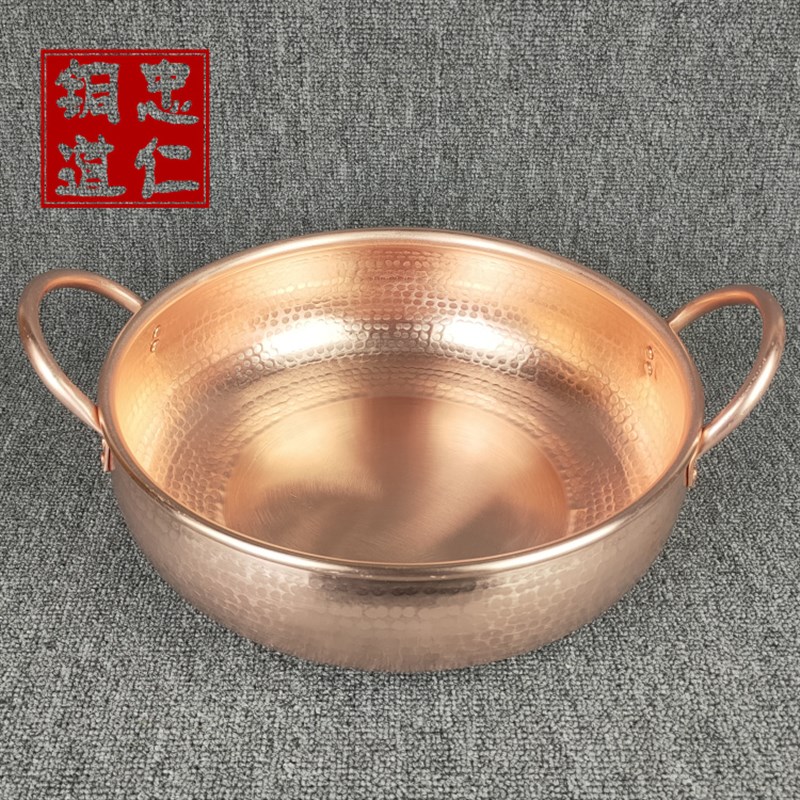 纯紫铜耳鼓型锅电磁炉专用铜锅加厚家用铜火锅纯手工串串商用锅 - 封门大雪商城