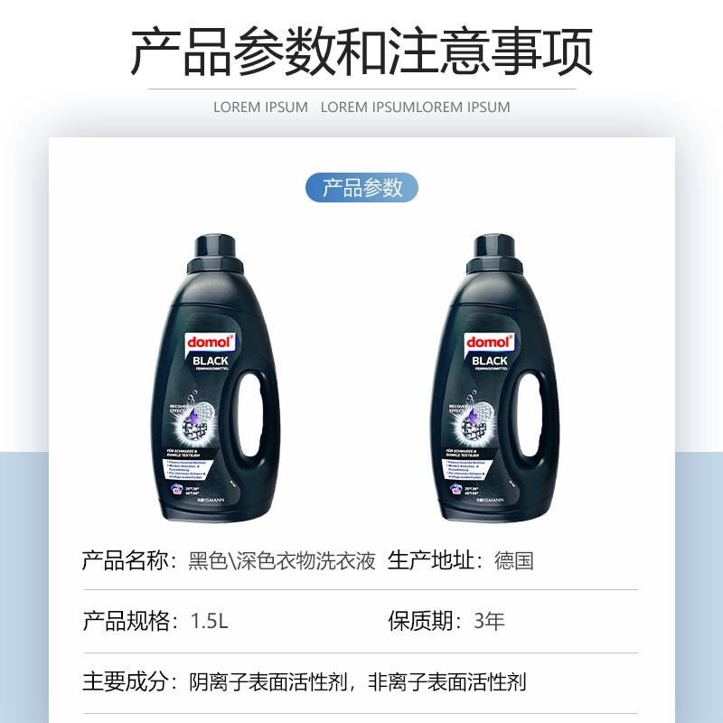 domol德国进口黑色深色衣物洗衣液护色固色温和养护 1.5L