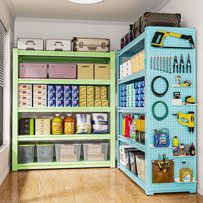 热销家用钢制货架置物架多层收纳架落地阳台客厅超市储物架彩色展