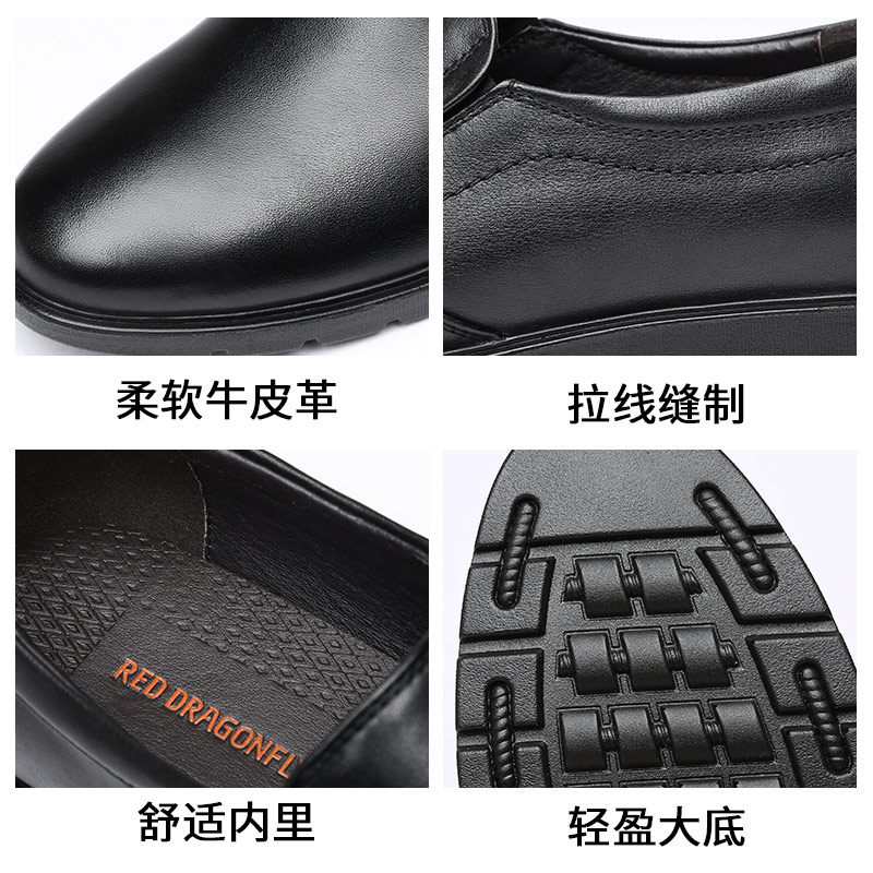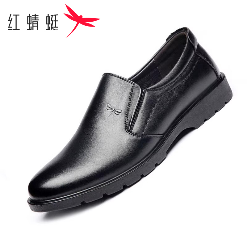 红蜻蜓男鞋春秋真皮透气商务休闲皮鞋男士软底乐福鞋中老年爸爸鞋 - 红蜻蜓易迅专卖店