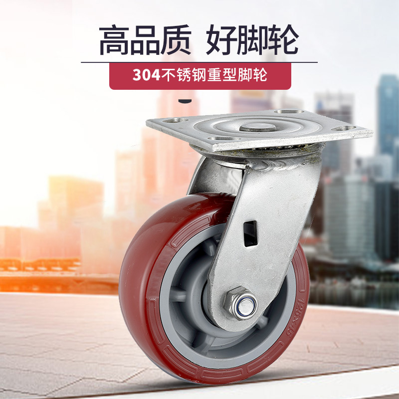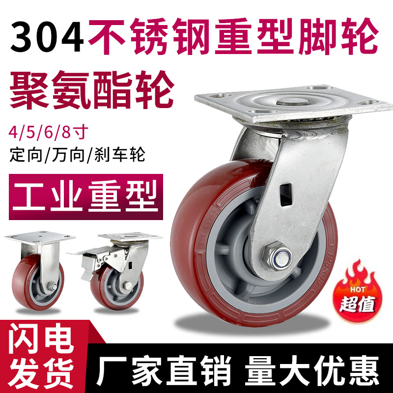4寸5寸6寸8寸304不锈钢脚轮重型聚氨酯万向轮滑轮手推车刹车轮子 - d[s406772915]