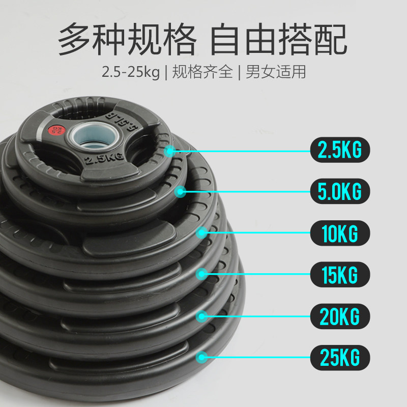 恒达健身房商用家用杠铃片包胶5CM大孔铁芯男士举重奥杆手抓配重 - 恒达哑铃企业店