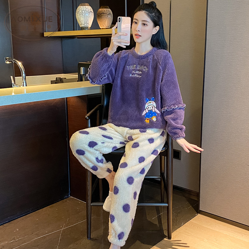 睡衣冬季女款2025年新款珊瑚绒可爱套装加厚法兰绒圆点家居服秋冬 - 奥蜜雪旗舰店