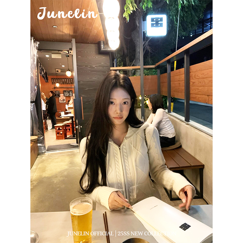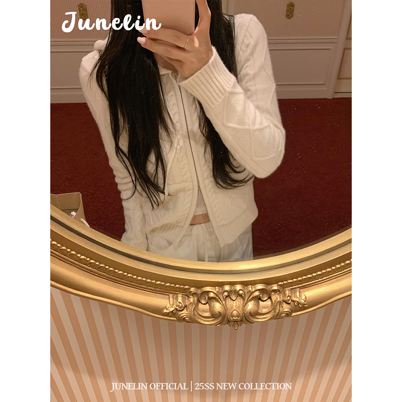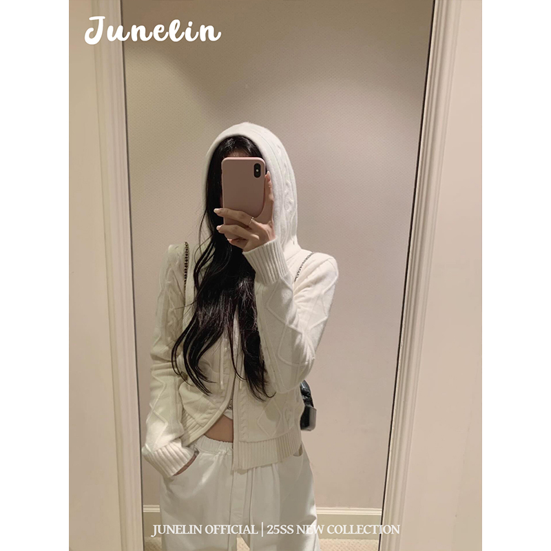 六月林 韩国博主同款清纯温柔风小众设计麻花拉链连帽针织外套女 - 六月林 junelin official