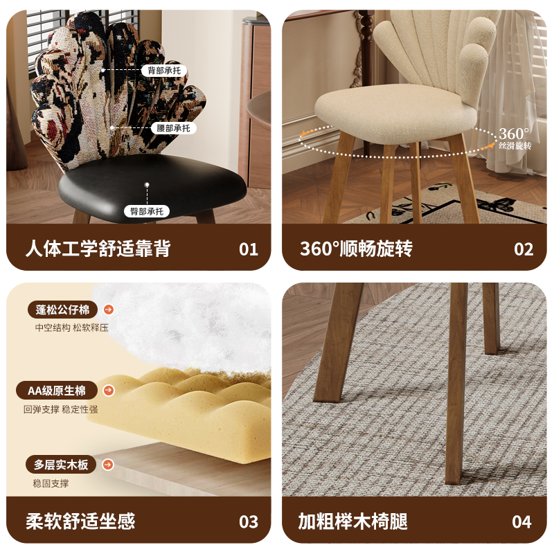 您的位置:他他商城  >   >  威展实木餐椅法式中古风梳妆椅复古餐桌椅家用书桌椅设计师椅子