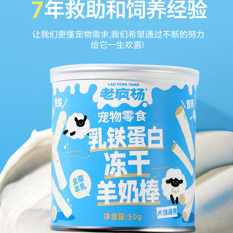 老疯杨焦点冻干零食猫草粒化毛狗狗羊奶棒营养鸡肉三文鱼油鸡蛋黄 - 老疯杨旗舰店