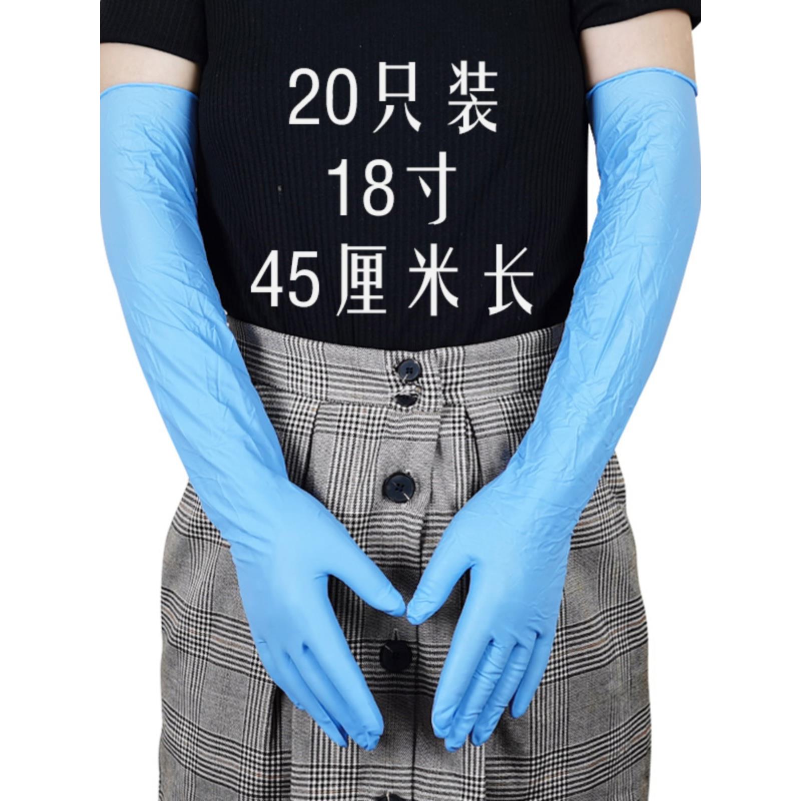 18寸加长薄丁腈耐酸碱贴手家务清洁洗碗洗衣橡胶一次性手套20只装