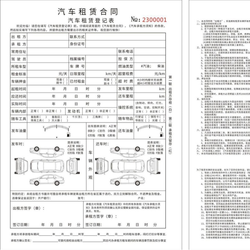 租车单 汽车租赁合同 车辆租凭协议 收据单 派车交接单 验车单据 - 善福祺舫店