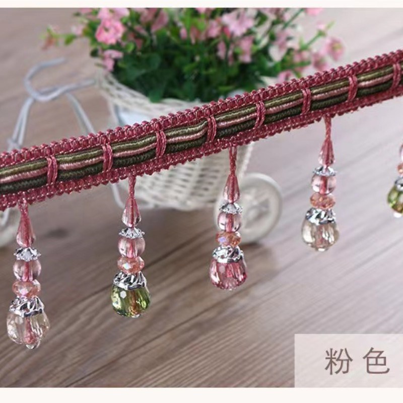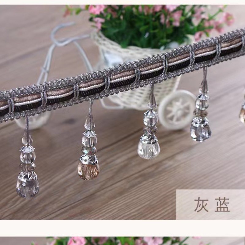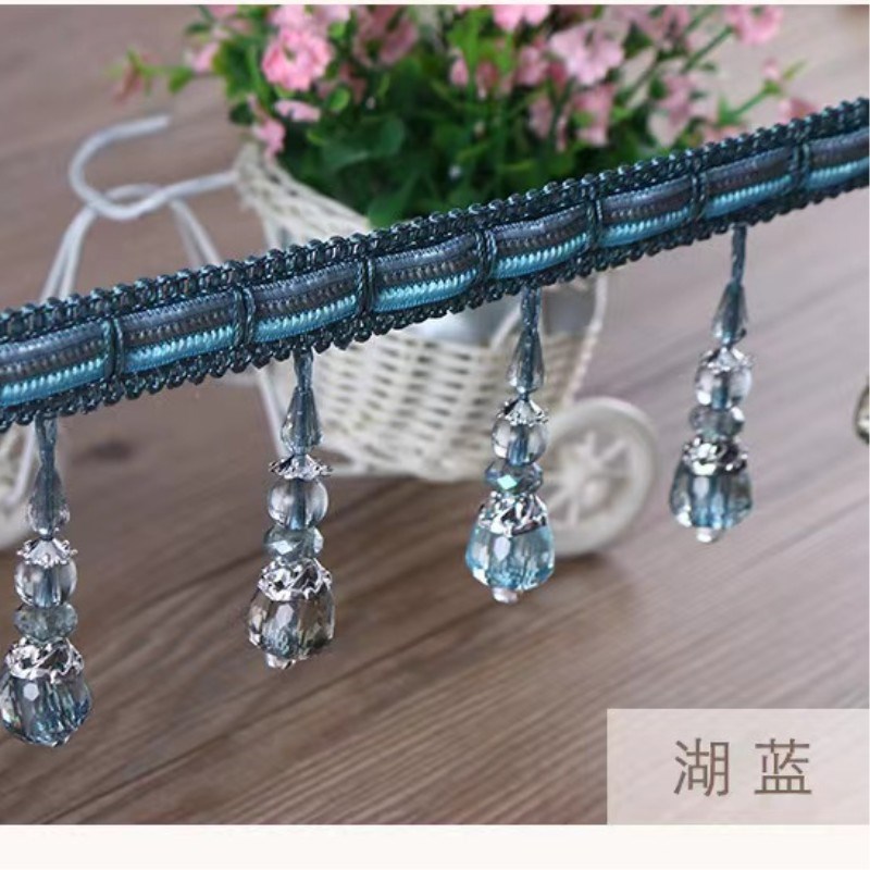 窗帘花边装饰花边流苏布料配饰珠子辅料流苏吊坠边穗帘头拼接孔蓝