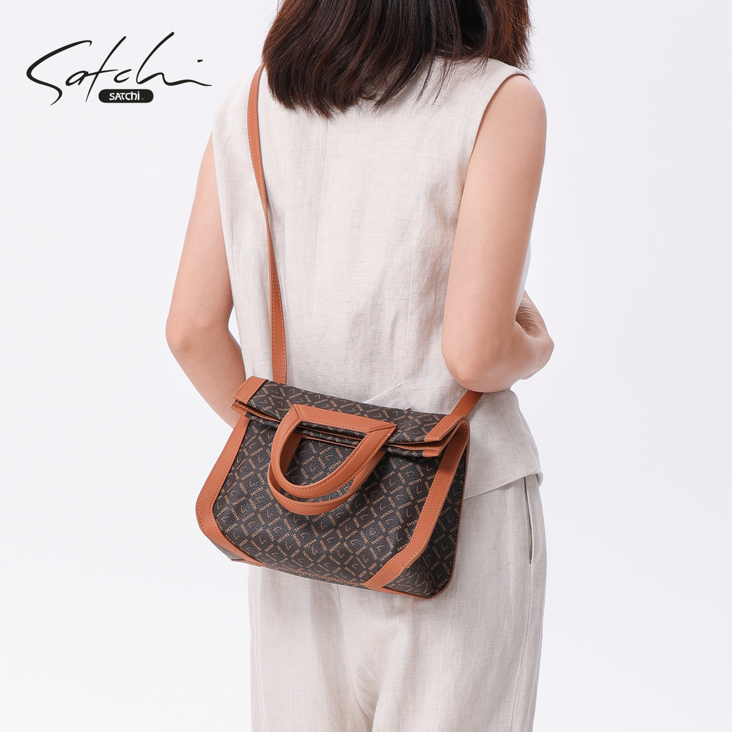 SATCHI/沙驰老花折叠包女2025新款通勤公文包小众设计单肩手提包 - satchi沙驰箱包旗舰店
