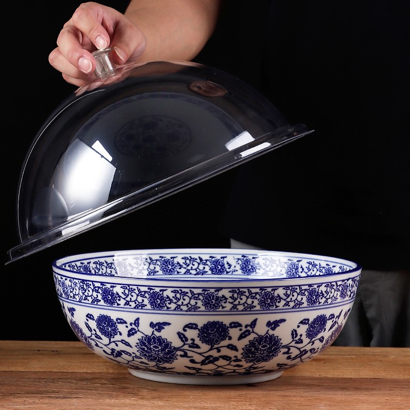 青花瓷大碗冒菜卤菜泡菜凉菜碗陶瓷商用带盖宽口深碗大号复古 - 地海鲜运馆