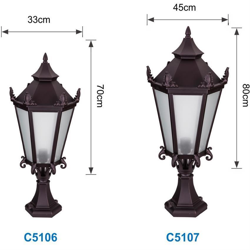 您的位置:他他商城  >   >  欧式压铸铝柱头灯六角六边形玻璃灯罩草坪灯欧规宽电压围墙灯