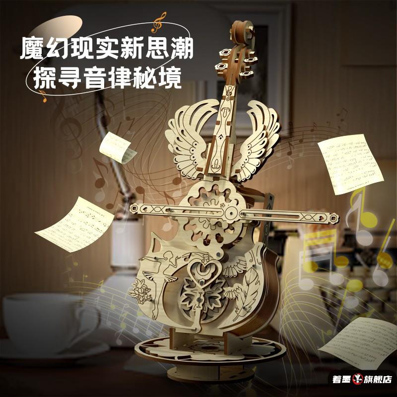 秘境大提琴电动八音盒立体拼图木质拼装手工diy礼物音乐盒送女生 - 着墨旗舰店