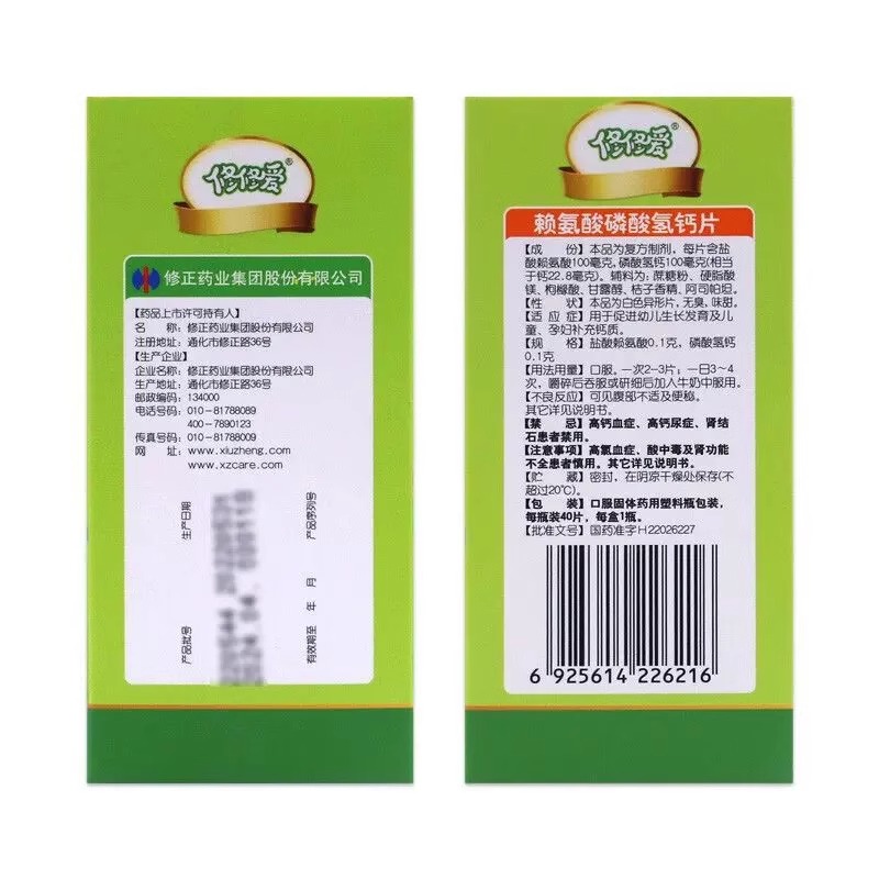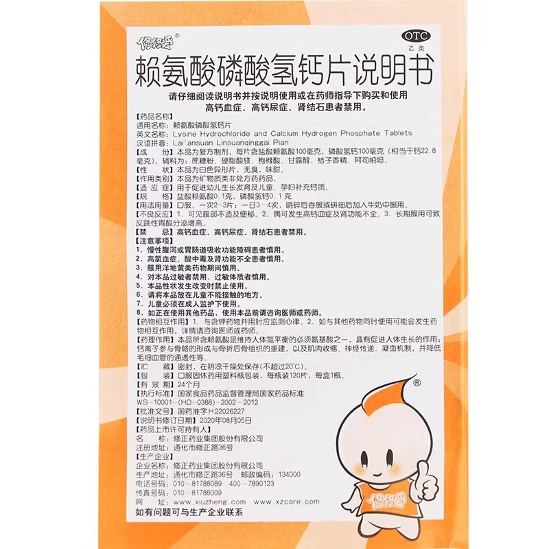 修正修修爱赖氨酸磷酸氢钙片120片促进幼儿生长孕妇补充钙 - 辛一医药专营店