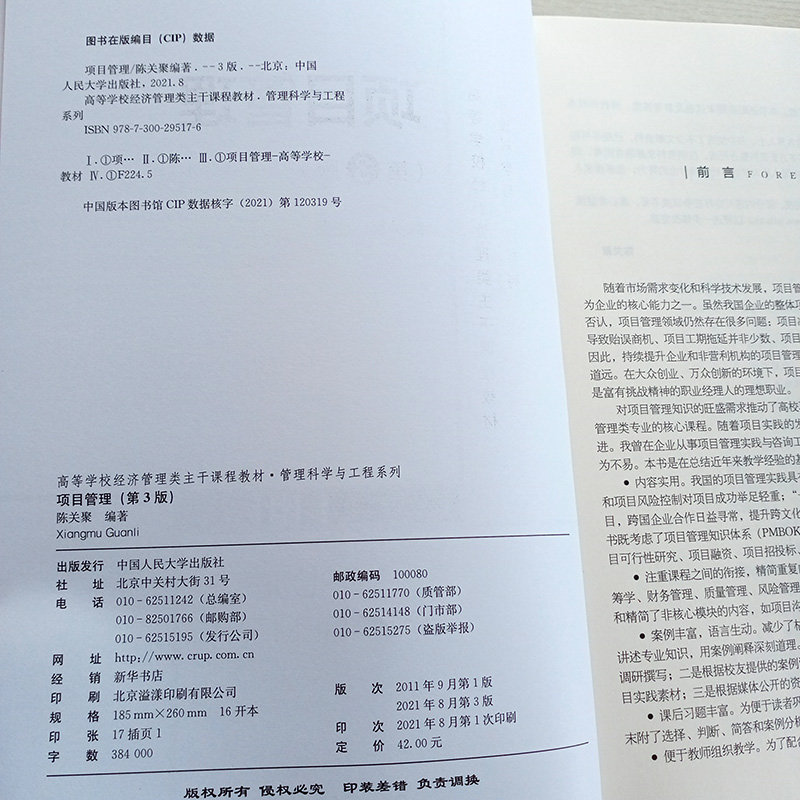 项目管理 第3版第三版(高等学校经济管理类主干课程教材·管理科学与工程系列)陈关聚 9787300295176 中国人民大学出版社 - 香泉书海图书专营
