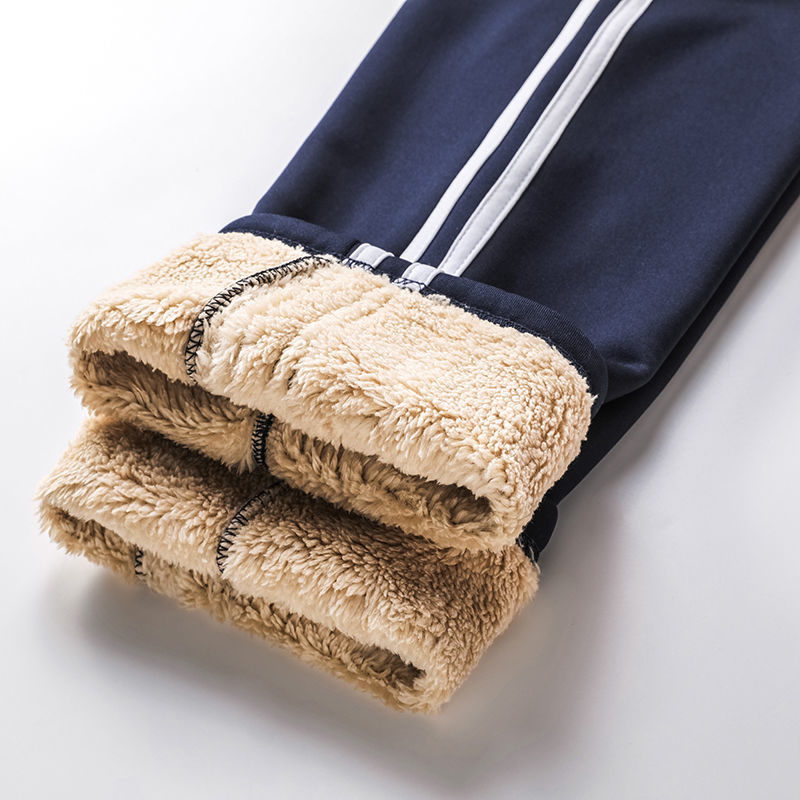 冬季纯棉校服裤男女羊羔绒一条杠加绒加厚儿童两条杠藏蓝校服校裤