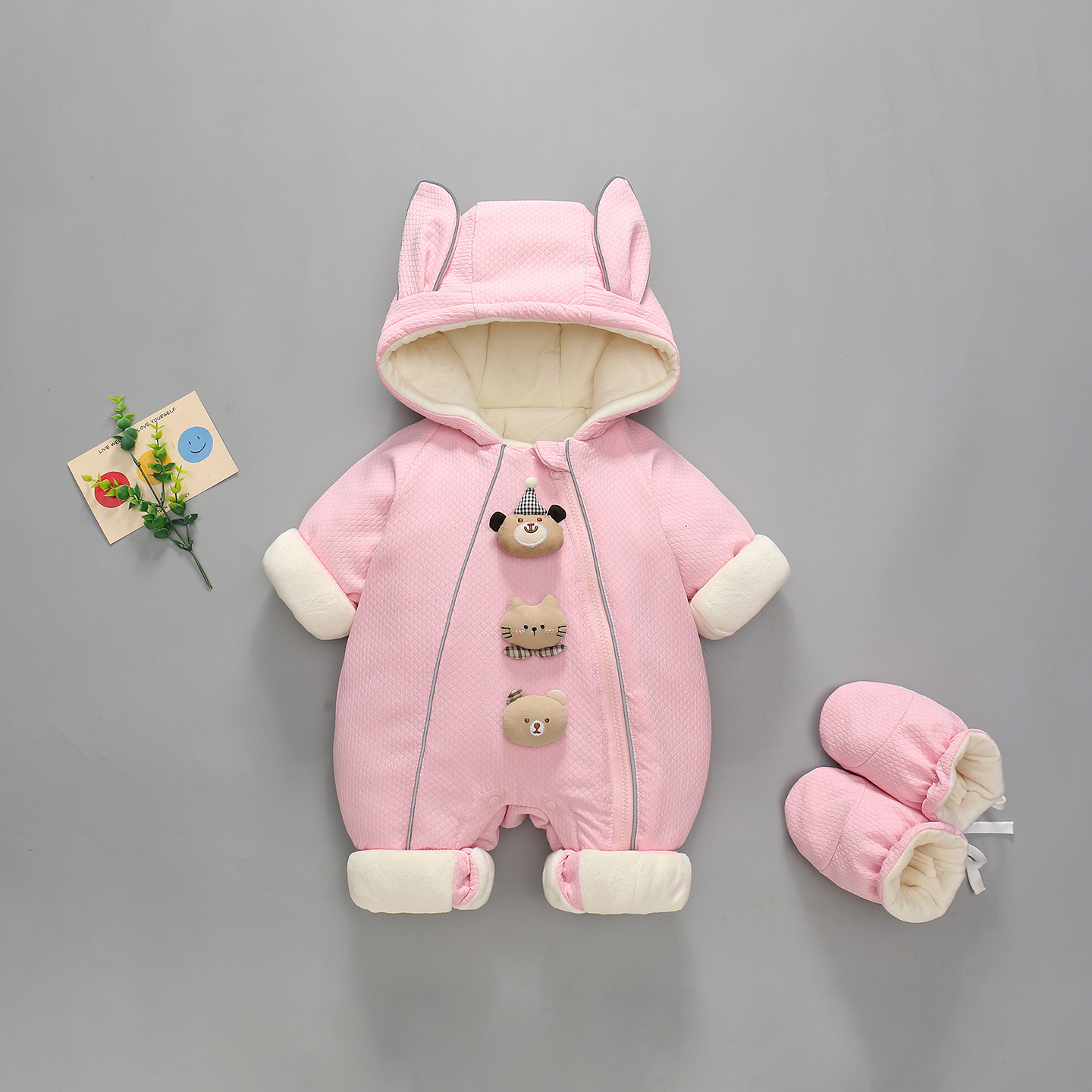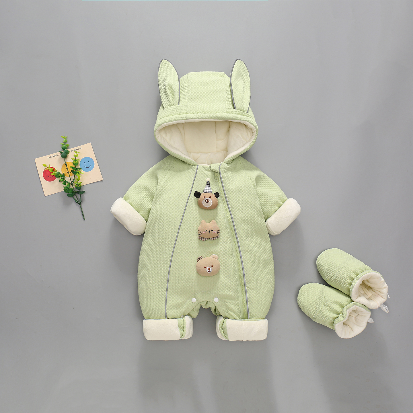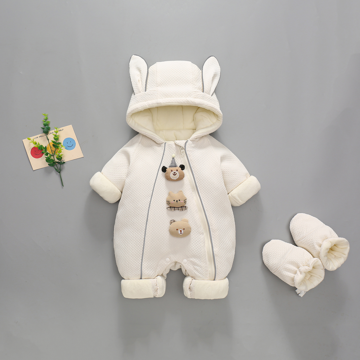 婴儿新生儿网红男宝宝女连体衣冬装衣服三只玩偶冬新生儿抱衣冬季