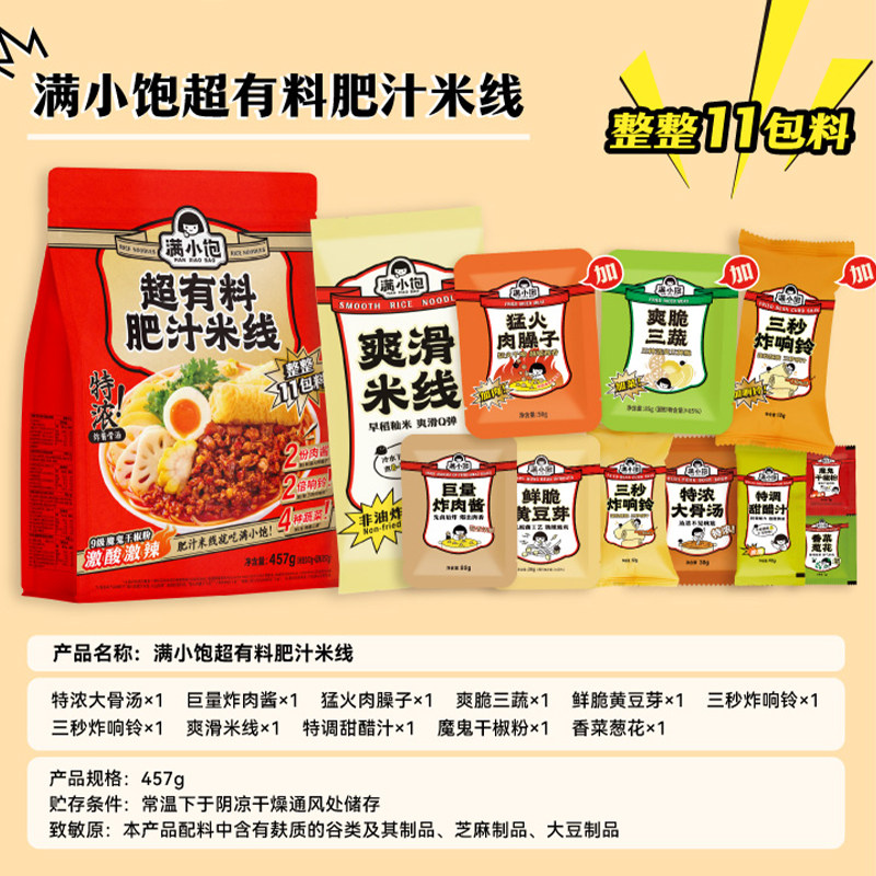 正品满小饱的肥汁米线袋装米粉方便面懒人夜宵速食品酸辣螺蛳粉丝 - 肥宅便利店