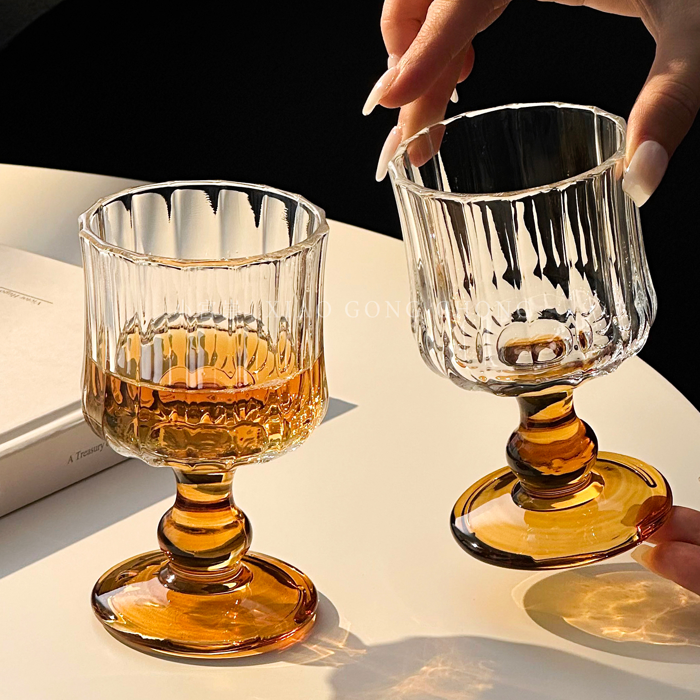 小众设计感氛围感中古酒杯玻璃杯家用法式高脚杯香槟杯葡萄酒杯子 - 小宫崇