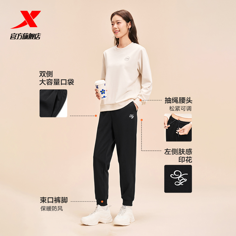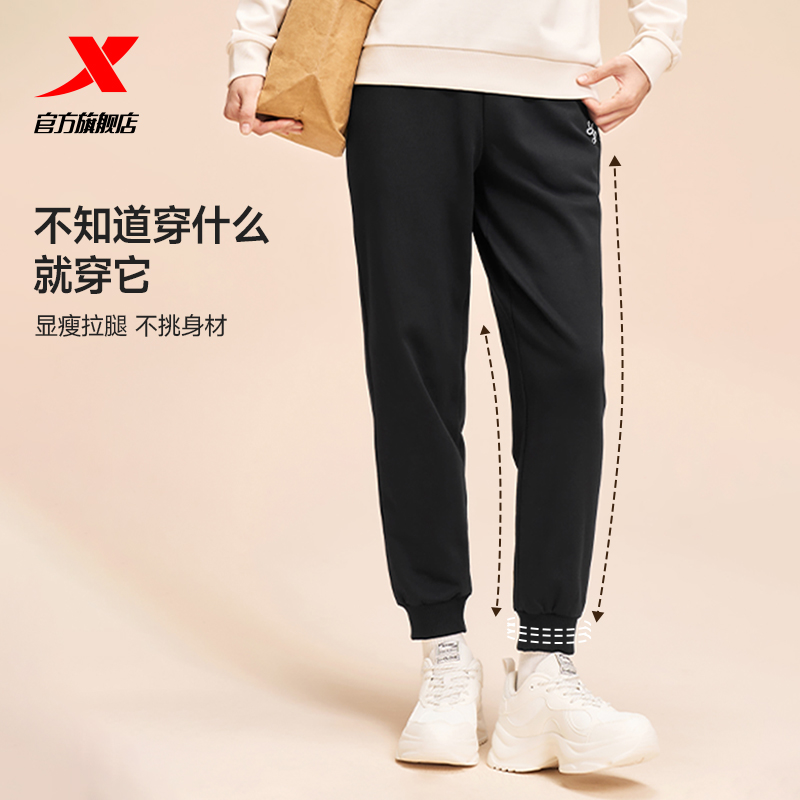 特步加绒卫裤女冬季女装束脚裤针织裤休闲运动裤卫裤百搭黑色裤子 - 特步官方旗舰店