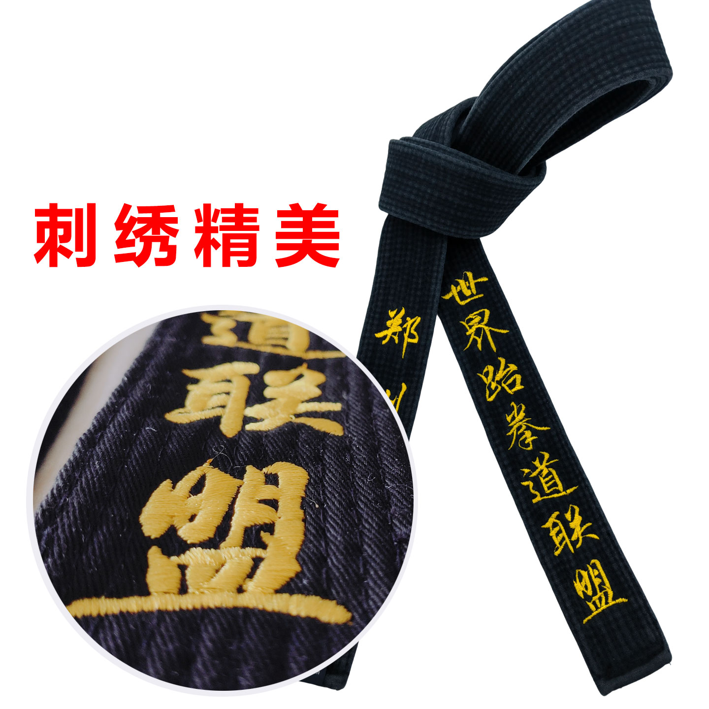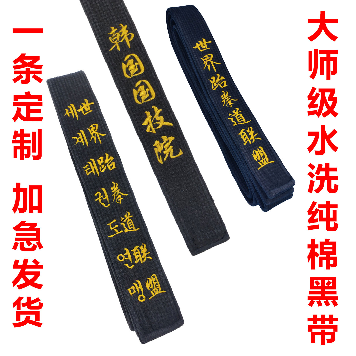 跆拳道黑带绣字世界跆拳道联盟姓名教练腰带英韩文段位刺绣道带