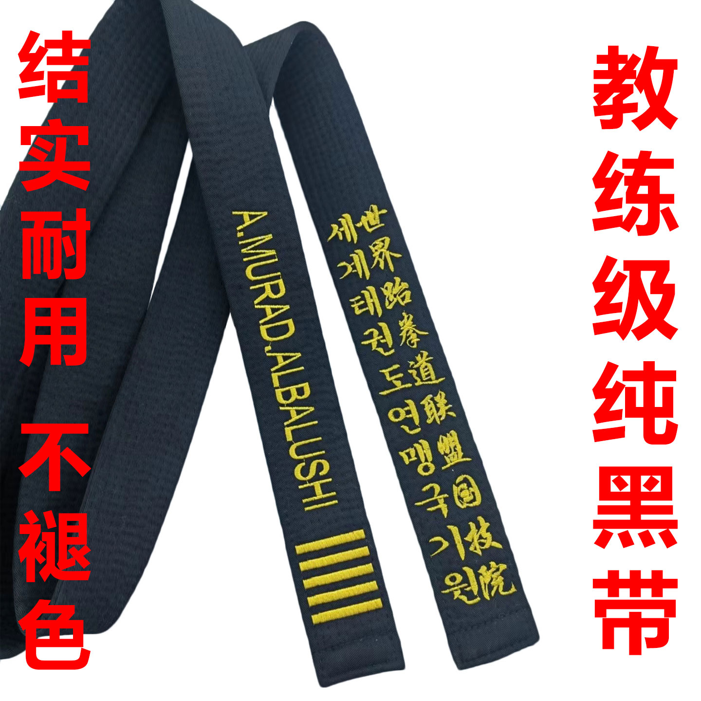 跆拳道黑带绣字世界跆拳道联盟姓名教练腰带英韩文段位刺绣道带 - 同达体育工厂企业店