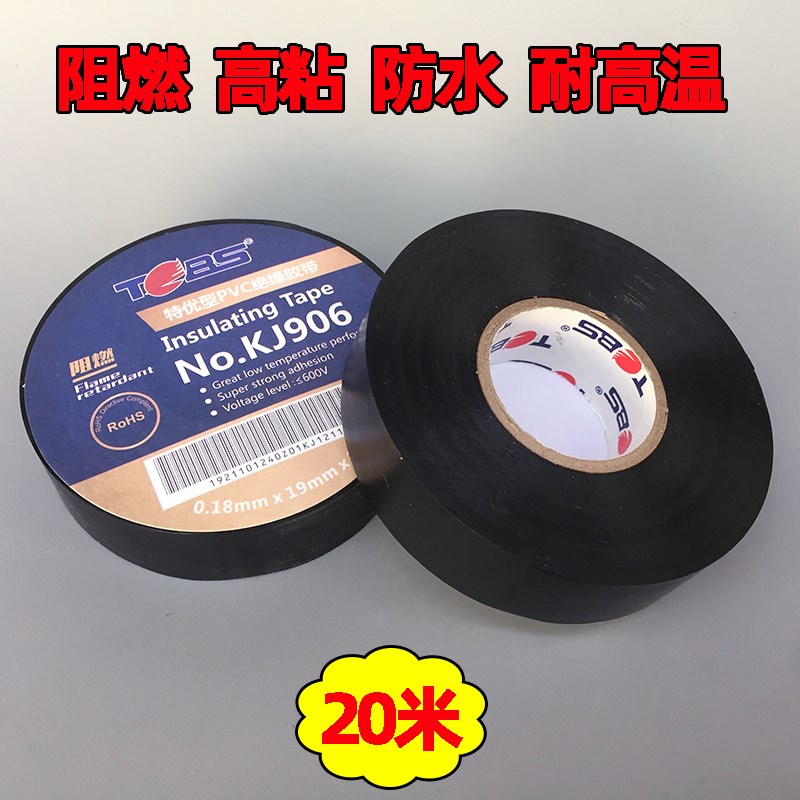 电工绝缘胶带高粘科健20米防水阻燃黑色耐高温PVC大卷裹线电胶布
