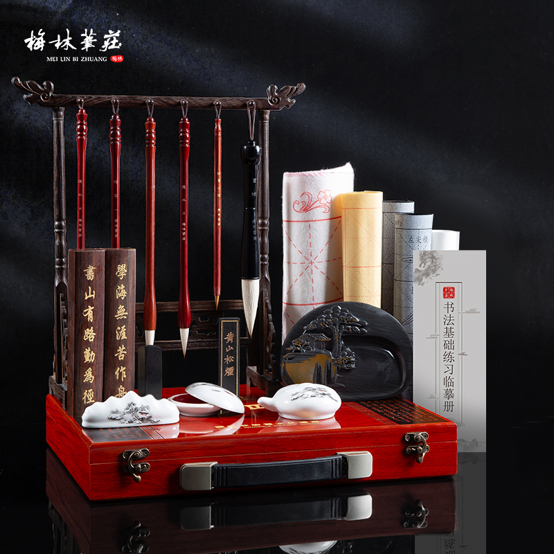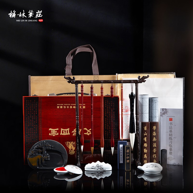 梅林笔庄文房四宝精品套装送礼高档礼盒笔墨纸砚毛笔初学者书法入 - 傲和严选店