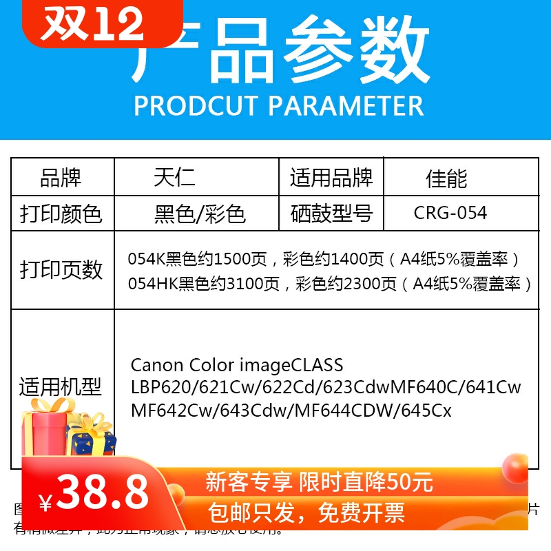 您的位置:他他商城  >  文体  >  适用佳能MF643Cdw硒鼓LBP623Cdw 621墨盒CRG054 MF641Cw 645C硒鼓