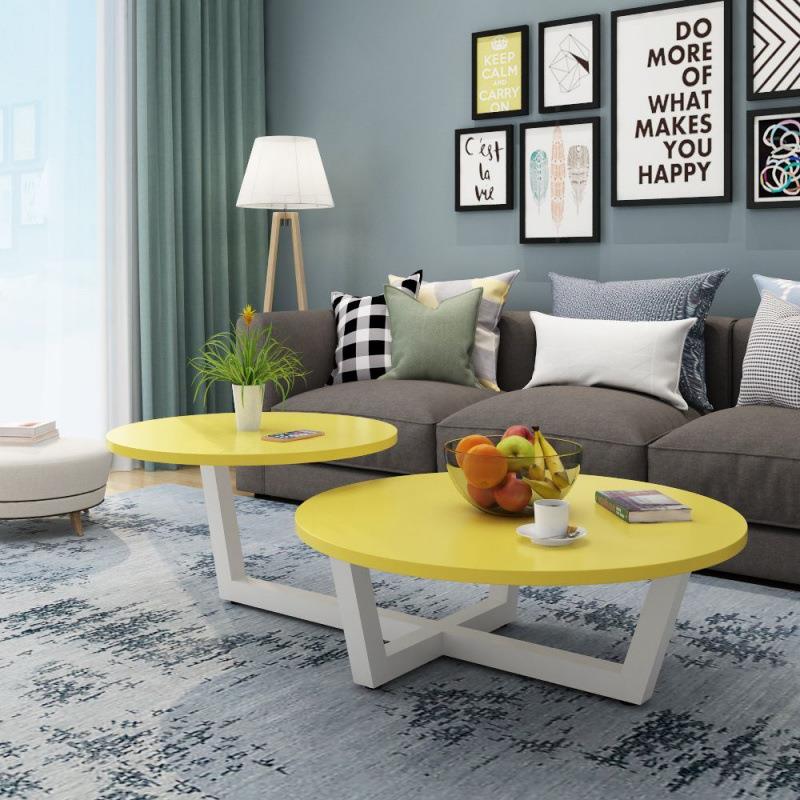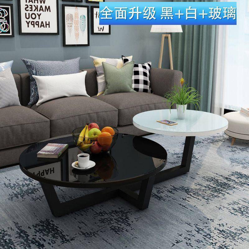 北欧茶几现代简约小户型圆形高低边几客厅经济型钢化玻璃茶桌组合 - 欧非文工场