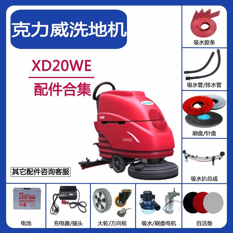 克力威XD20WE洗地机配件吸水胶条刮皮刷盘吸排水管充电器轮子电机 - 信达枣林商城
