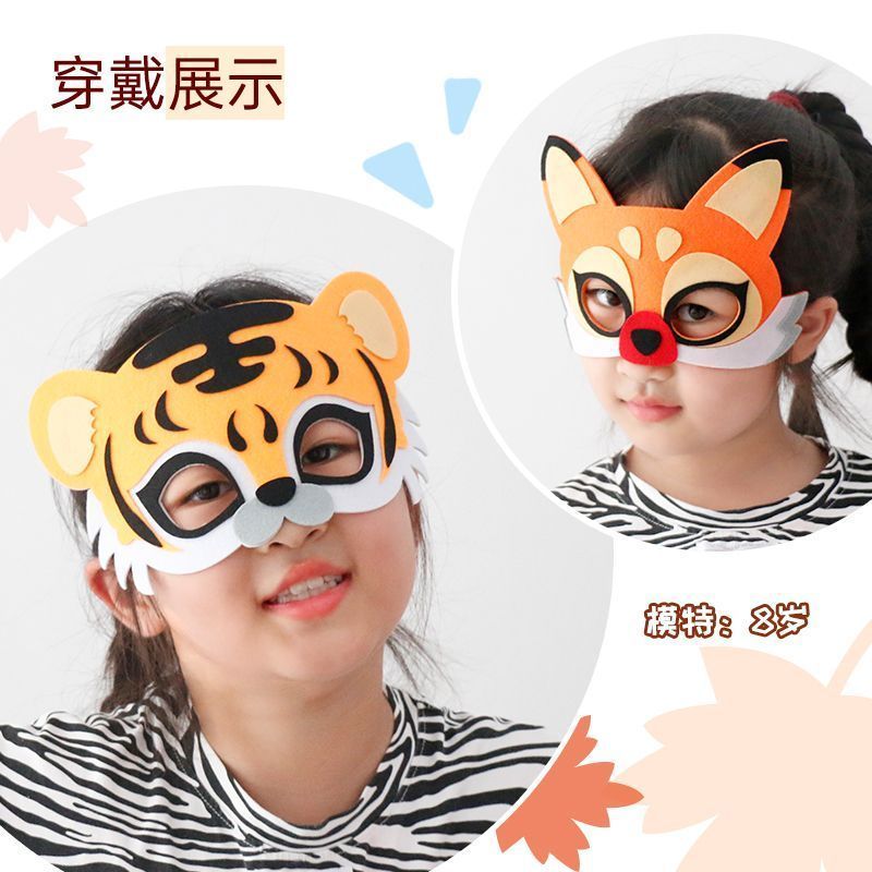 幼儿表演道具卡通面具老虎狐狸狮子大灰狼可爱动物头饰亲子套装
