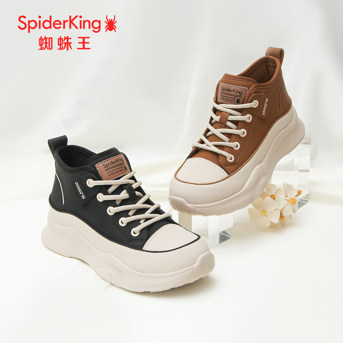 SPIDER KING/蜘蛛王正品女休闲鞋2025秋新款高帮百搭板鞋松糕厚底 - 蜘蛛王爵庆专卖店