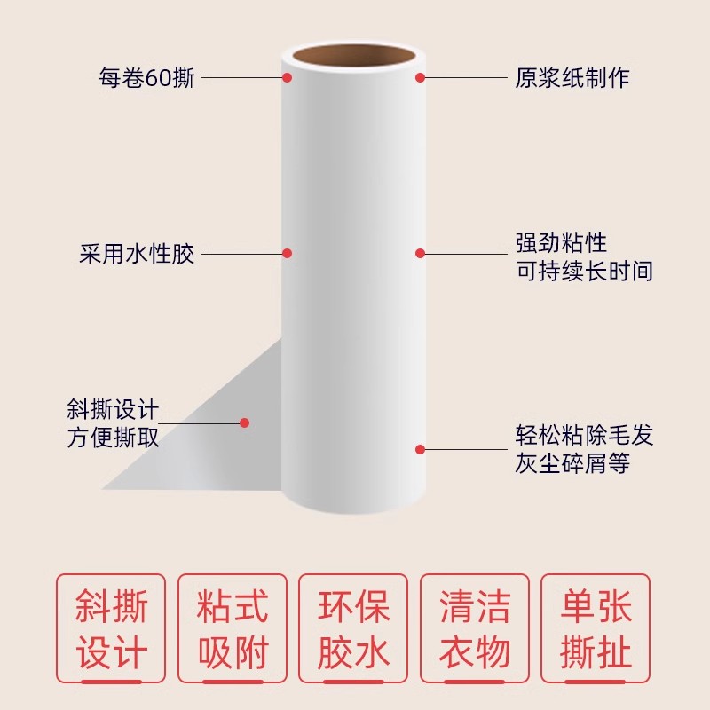 您的位置:他他商城  >   >  粘毛器滚筒替换纸可撕式卷纸滚刷专用去猫毛家用衣服头发清理神器
