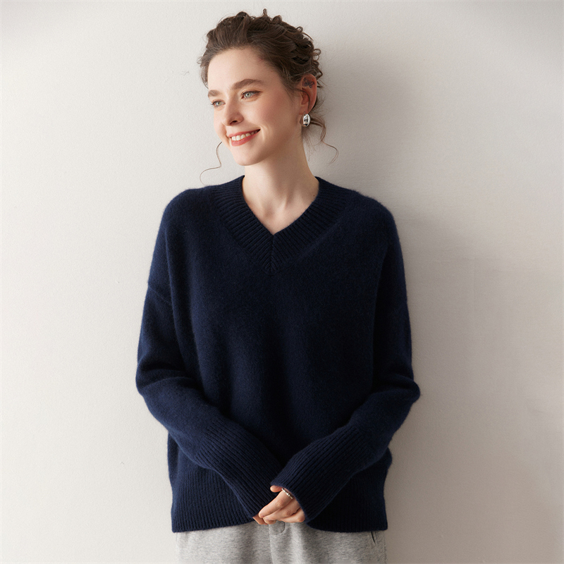 冬季新款重磅三股加厚山羊绒衫女宽松大码慵懒风V领毛衣针织衫 - 春博服装直营店