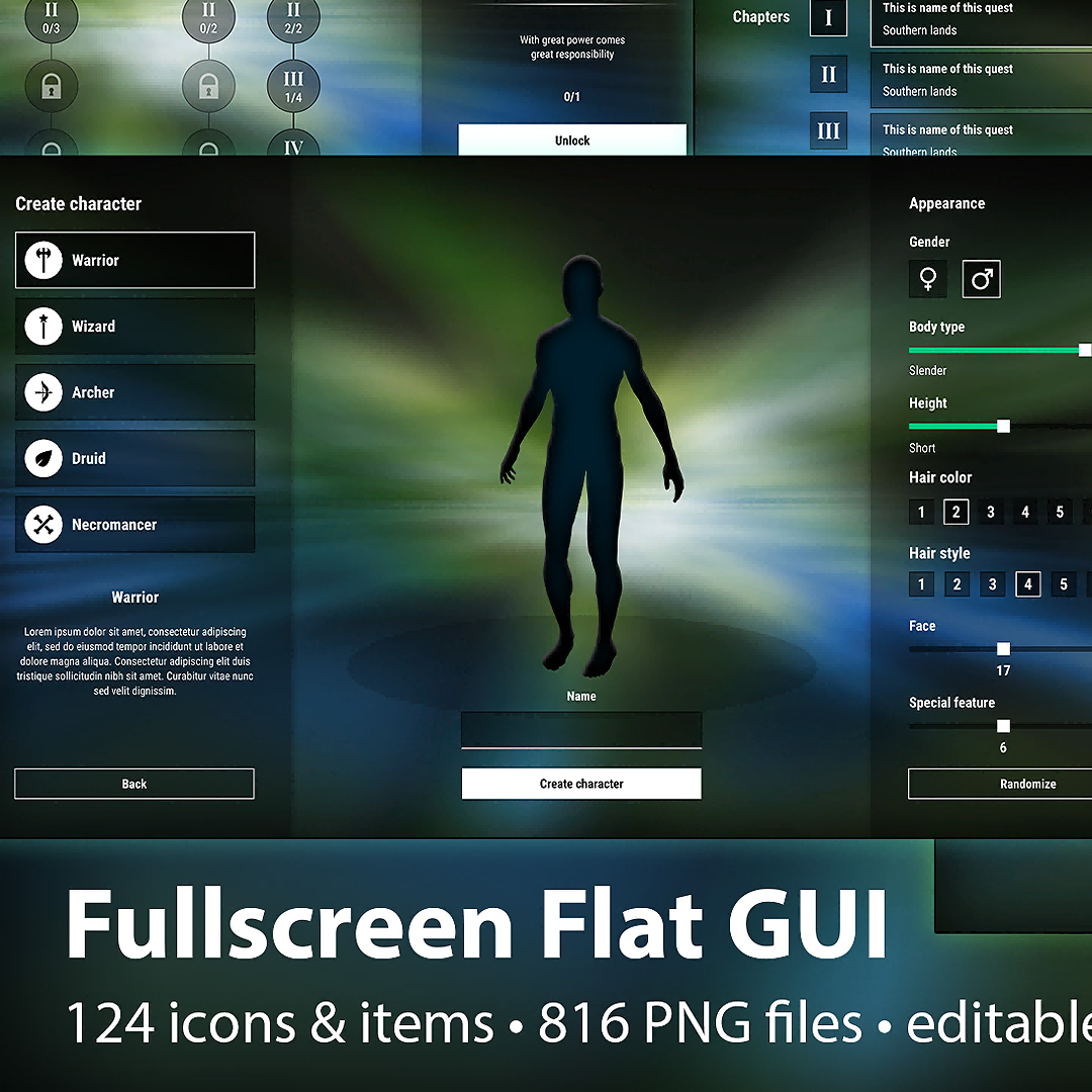 UE4虚幻5 Fullscreen Flat GUI UI Kit transparent 全屏平面UI - CG熊猫(虚幻5UE4)